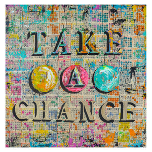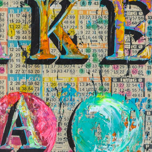The excitement and nostalgia of Bingo inspired this series. The colorful dots combine to create a background of inconsistent consistency and a graphic language of pop art. Each dot was put there with desire and hope to shout out BINGO!