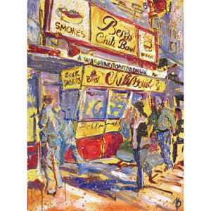 I LOVE DC + I LUV Chili!! Ben’s Chili Bowl is a landmark in the foodie history of DC and a huge part of my neighborhood. The storefront signage, the infamous chili dog and the tremendous connection it has to all Washingtonians is the reason I had to paint a “portrait” of this joyous destination.