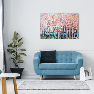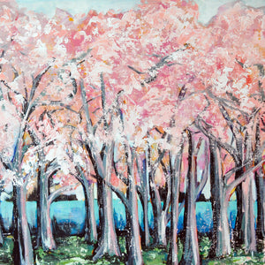 This piece was created as part of a series for the National Cherry Blossom Festival. Every year I like to go and paint under the blossoms + last year I even did a painted installation! Spring in DC is so beautiful!