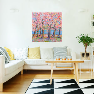 I started this piece in 2019 while sitting under the blossoms. I completed it in 2020. Cherry Blossom season is such a beautiful time in DC. I wish the trees could be this colorful all year long.