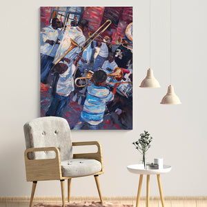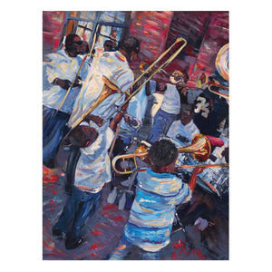 In the summer of 2008, I came across an amazing big brass band in Adams Morgan called the Lively Stones. I originally created these pieces in 2008 + 2009 from pictures I had taken of them playing on the streets ofthe neighborhood. The energy and joy they exuded was contagious and I hope these piecesreflect just that.
