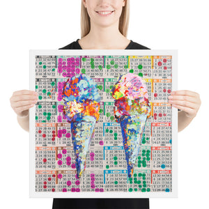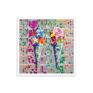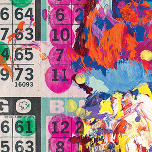 The excitement and nostalgia of Bingo inspired this piece! The colorful dots combine to create a background of inconsistent consistency and a graphic language of pop art. Each dot was put there with the desire and hope to shout out BINGO!