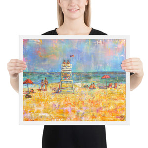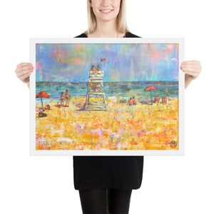 I live for long summer days at the beach. This piece was originally created for a client who worked summers as a lifeguard growing up and now returns every summer with her own family. I am excited to make this available as a print for anybody who loves beach days as much as I do!