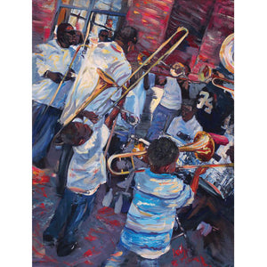 In the summer of 2008, I came across an amazing big brass band in Adams Morgan called the Lively Stones. I originally created these pieces in 2008 + 2009 from pictures I had taken of them playing on the streets of the neighborhood. The energy and joy they exuded was contagious and I hope these pieces reflect just that.