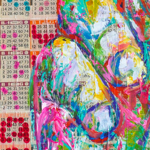 • Acrylic and gold leaf on Bingo sheets.