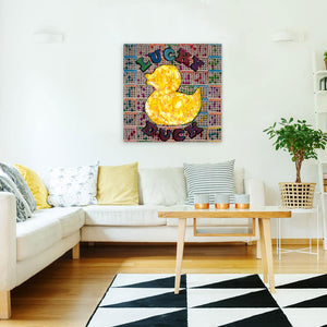 The excitement and nostalgia of Bingo inspired this series. The colorful dots combine to create a background of inconsistent consistency and a graphic language of pop art. Each dot was put there with desire and hope to shout out BINGO!