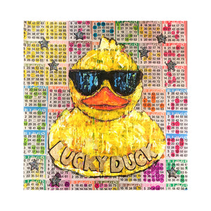 The excitement and nostalgia of Bingo inspired this series. The colorful dots combine to create a background of inconsistent consistency and a graphic language of pop art. Each dot was put there with desire and hope to shout out BINGO!