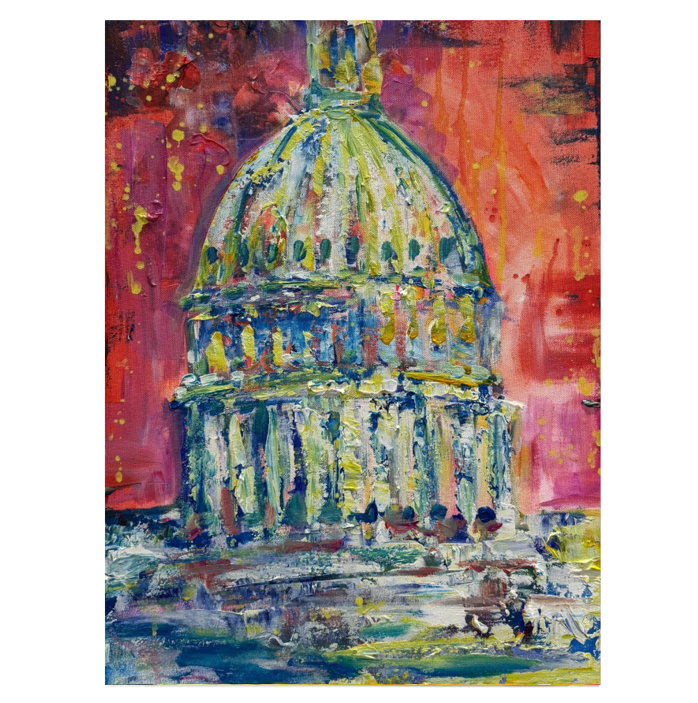 This collection is my love letter to Washington, D.C. After more than 20 years painting Capitols, each piece now reflects not just the city’s spirit, but also the evolving story of our times and my own journey as an artist, citizen, and activist. This marks the finale of my Capitol series, a meaningful turning point and the close of a chapter that has shaped my career.