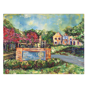 The original painting was created for the Connelly School of the Holy Child.Makes a great gift for anyone beginning their journey or graduating.