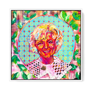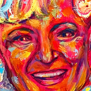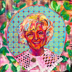 These mixed media originals were created with layers of texture to represent the personality of each Golden Girl. Look closely at each piece to see the fun details incorporated!