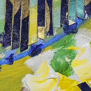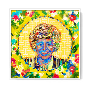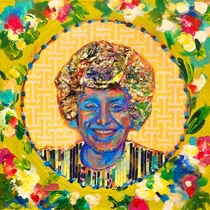 These mixed media originals were created with layers of texture to represent the personality of each Golden Girl. Look closely at each piece to see the fun details incorporated!