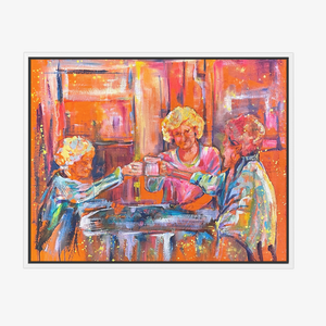 This piece was produced on loose canvas and currently is not stretched. Cost includes stretching & hanging hardware but not framing. We can provide assistance with framing for an additional fee that can be provided based on your framing preferences.