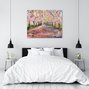 A hand embellished canvas print is a reproduction on which an added layer of paint is applied to the canvas. Paint is adhered with a palette knife to specific areas to enhance color, brush stroke & texture, making a giclee print look even more like an original.