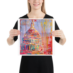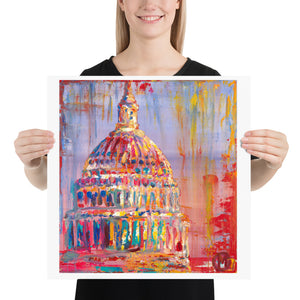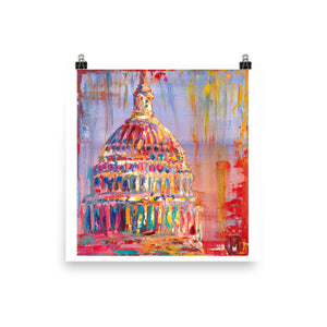 This piece was made in 2018. I made a series of bright and bold mini Pop Capitols. This piece shows the beautiful and plus side of DC.  I love the movement and energy of the colors in this piece.