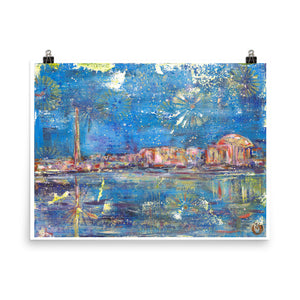 Open series paper prints are produced from an original painting to achieve high-resolution reproductions. Each print is produced on enhanced matte paper with 1/4" white borders and comes rolled in a tube. These prints are not editioned and hand signed by Maggie.