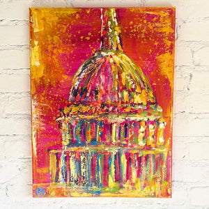 This collection is my love letter to Washington, D.C. After more than 20 years painting Capitols, each piece now reflects not just the city’s spirit, but also the evolving story of our times and my own journey as an artist, citizen, and activist. This marks the finale of my Capitol series, a meaningful turning point and the close of a chapter that has shaped my career.