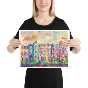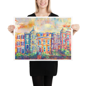 Open series paper prints are produced from an original painting to achieve high-resolution reproductions. Each print is produced on enhanced matte paper with 1/4" white borders and comes rolled in a tube. These prints are not editioned and hand signed by Maggie.