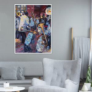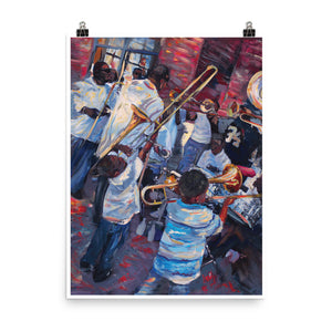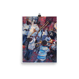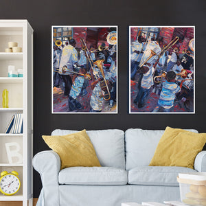 In the summer of 2008, I came across an amazing big brass band in Adams Morgan called the Lively Stones. I originally created these pieces in 2008 + 2009 from pictures I had taken of them playing on the streets of the neighborhood. The energy and joy they exuded was contagious and I hope these pieces reflect just that.