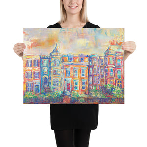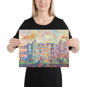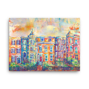 This was a commission for a client who lives in Capitol Hill. They wanted to capture "their block" as the sun set in the sky. The light hitting the row houses makes for a beautiful composition of color and joy.