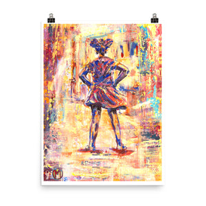 My painting "Fearless Girl" was inspired by Kristen Visbal's Fearless Girl, a four - foot bronze statue of a young girl in juxtaposition to Arturo DiModica's iconic Wall Street Charging Bull in New York City.