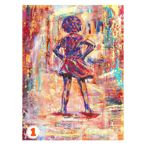 My painting "Fearless Girl" was inspired by Kristen Visbal's Fearless Girl, a four - foot bronze statue of a young girl in juxtaposition to Arturo DiModica's iconic Wall Street Charging Bull in New York City.