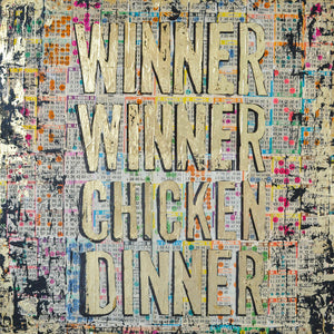 The excitement and nostalgia of Bingo inspired this series. The colorful dots combine to create a background of inconsistent consistency and a graphic language of pop art. Each dot was put there with desire and hope to shout out BINGO!